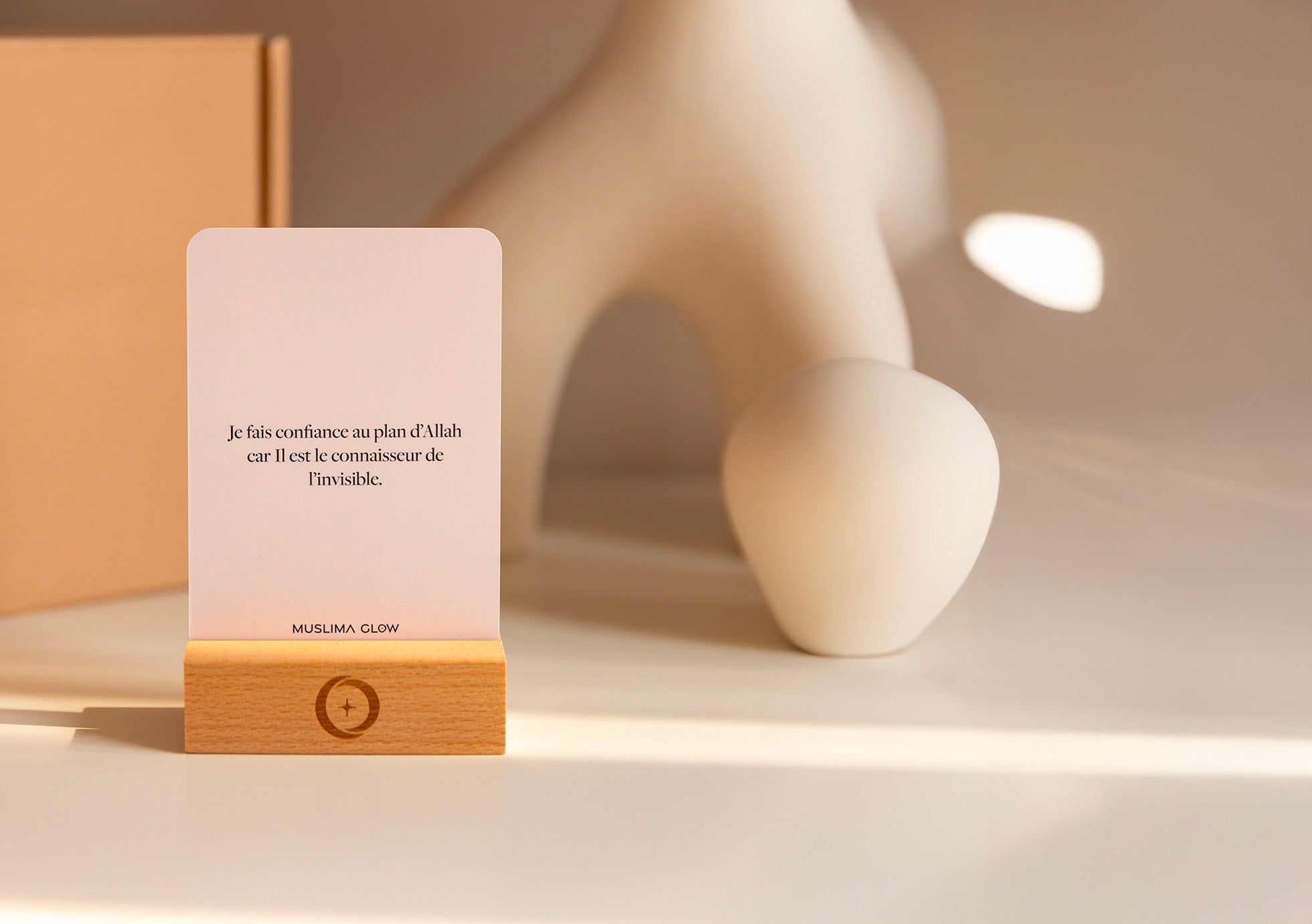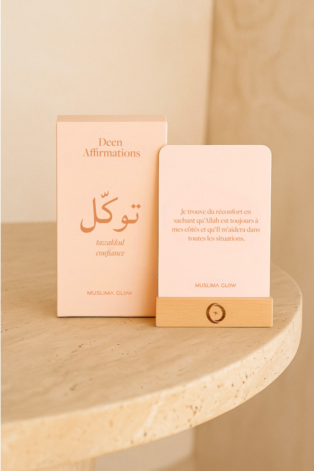 Les cartes Deen Affirmations : Pour renforcer ton tawakkul et cultiver un état d’esprit confiant et apaisé à travers des affirmations inspirées de l’Islam.