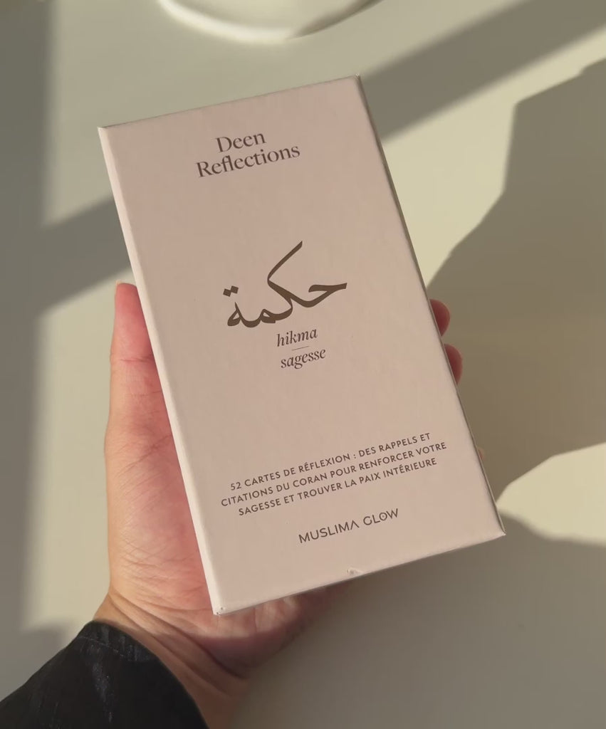 Nos cartes Deen Reflections - Hikma sont parfaites pour t’aider à découvrir des enseignements islamiques applicables au quotidien. (Clique ici pour en savoir plus)