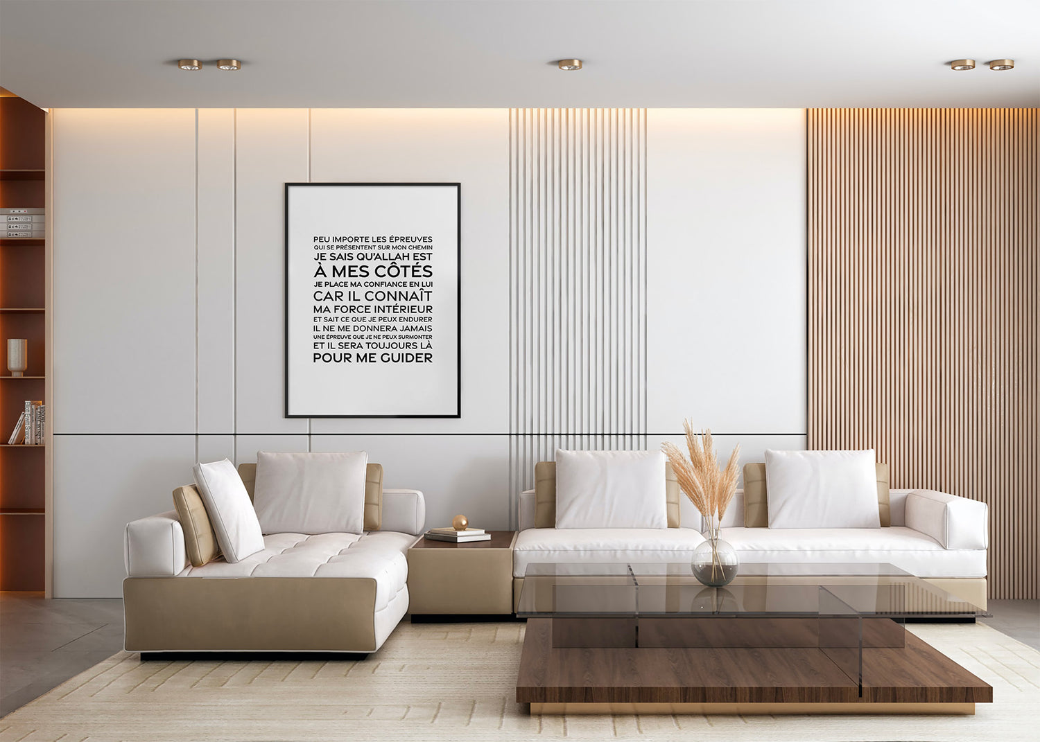 Avec son design moderne et épuré, cette affiche est parfaite pour tous les styles d’intérieur. Que ce soit dans ton salon, ton coin prière, ou même ton bureau, elle apportera une touche de sérénité et de raffinement à ton espace